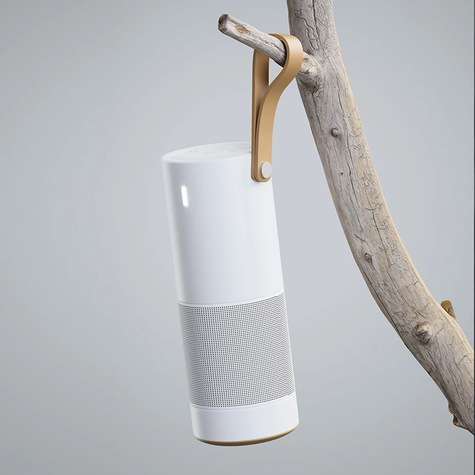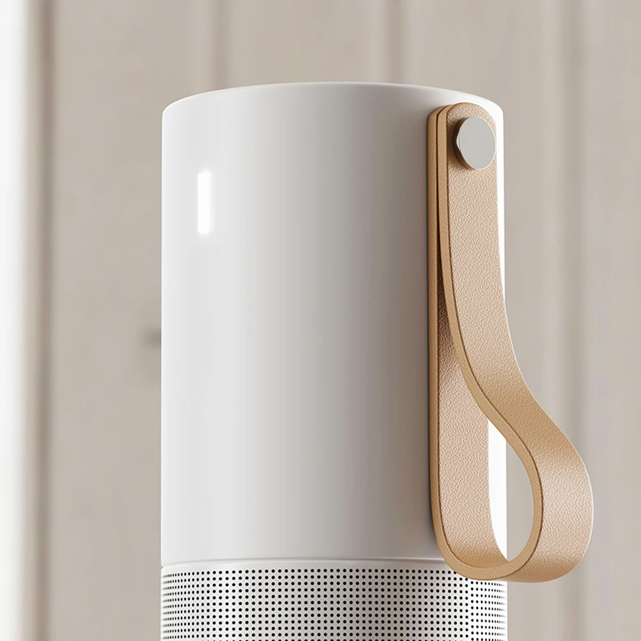 With its clean white finish, the BeoPure complements any space, blending seamlessly into your home, office, or on-the-go lifestyle.